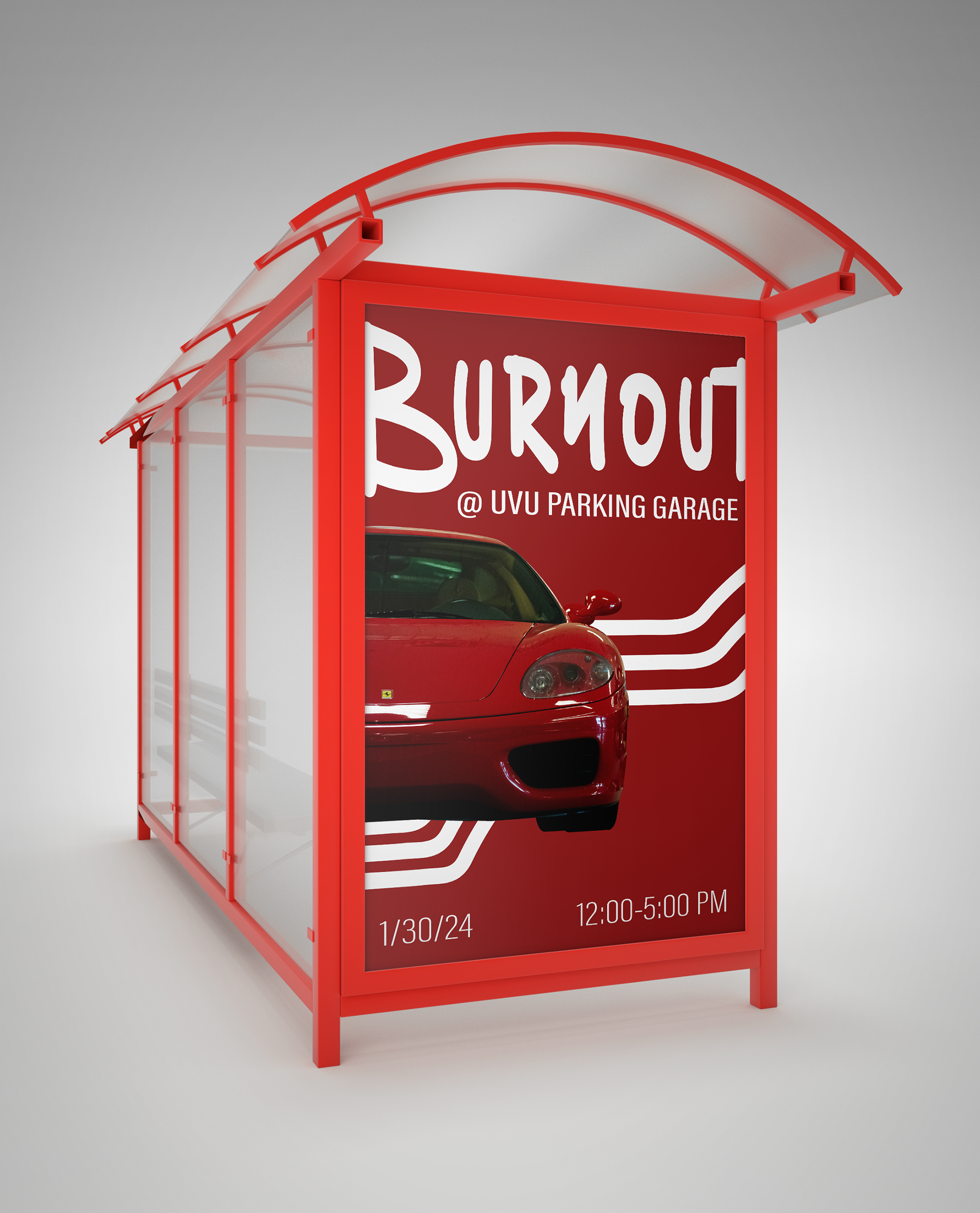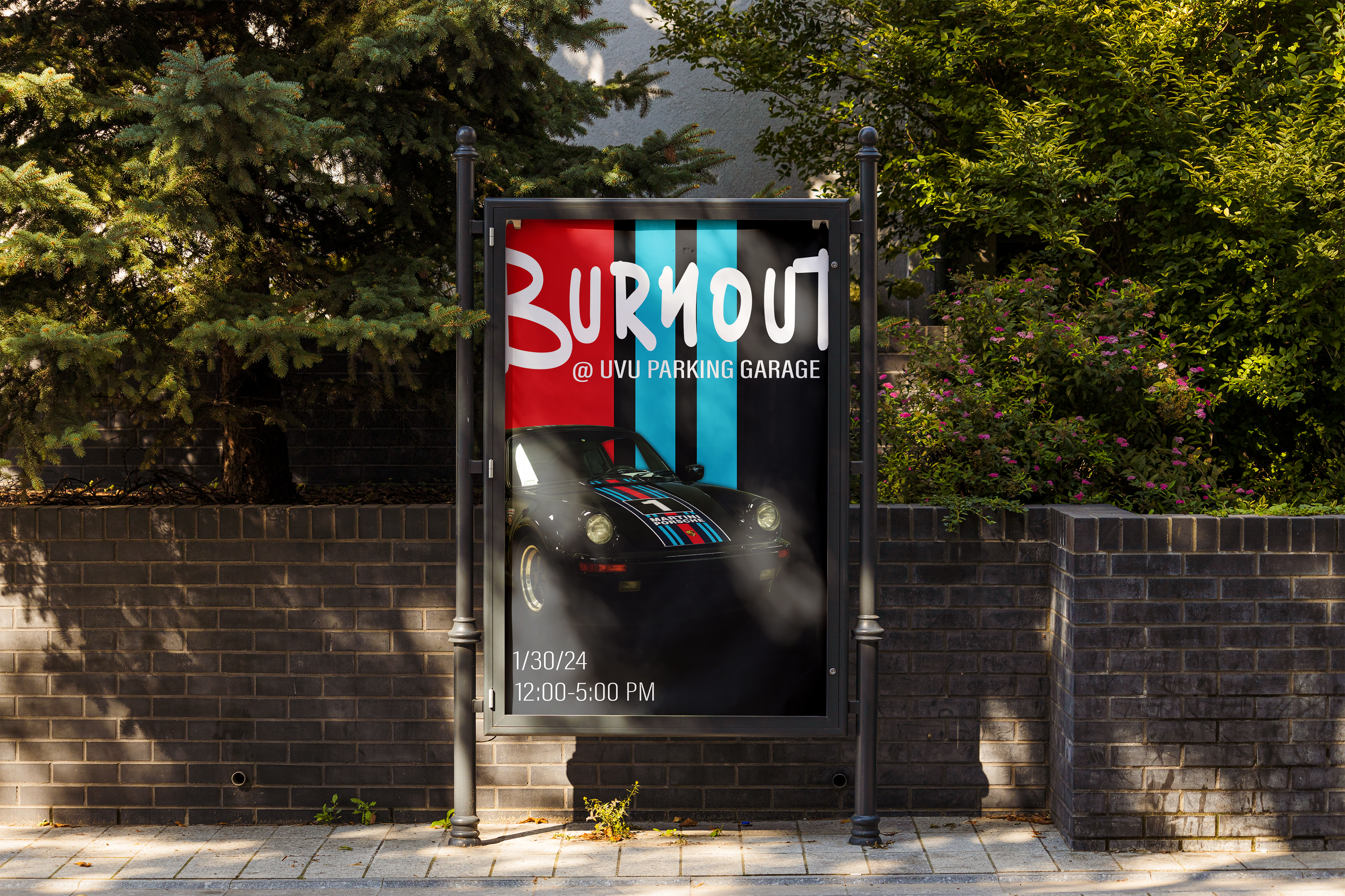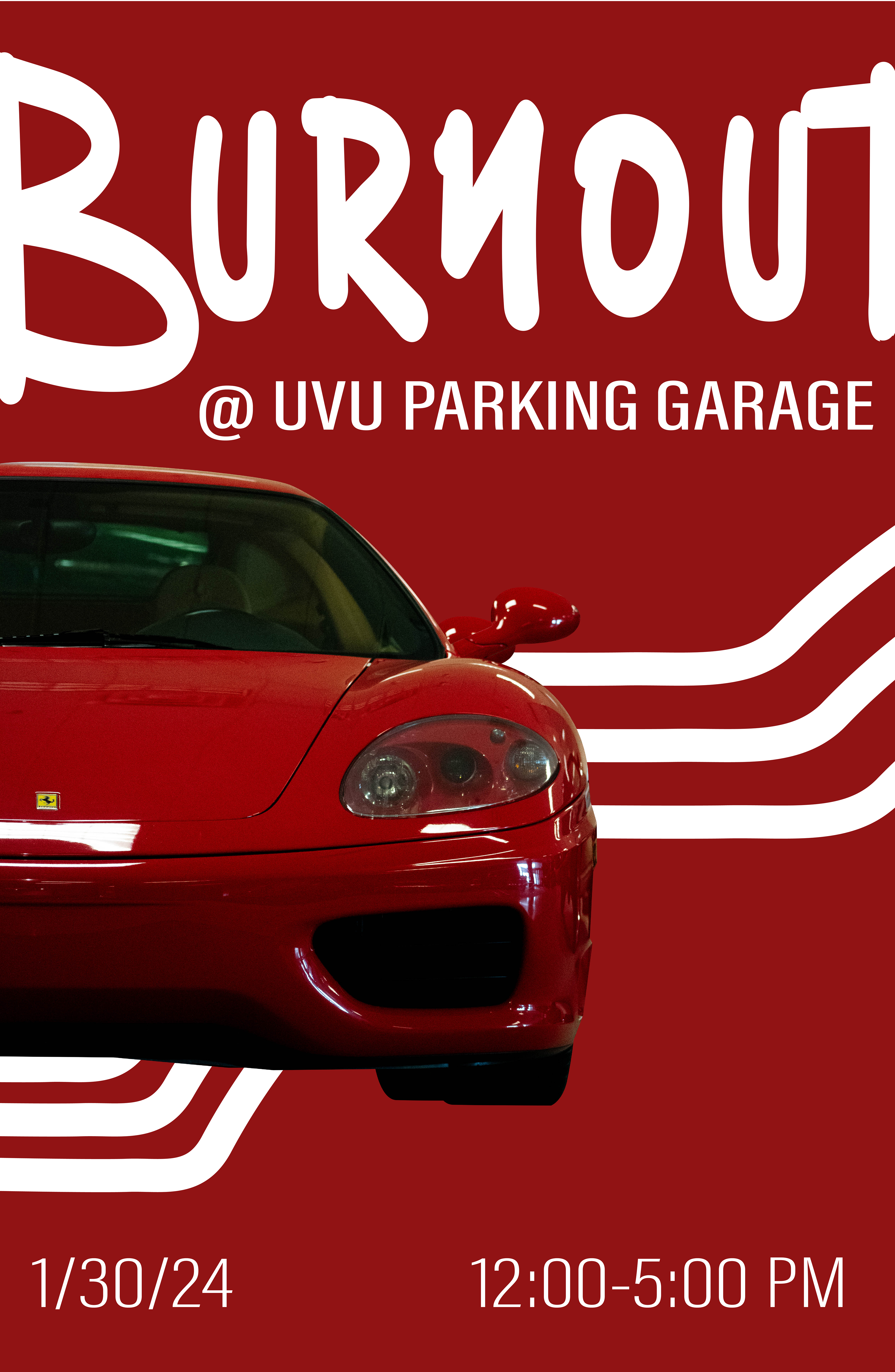 This series of posters is for a fictional car meet taking place at Utah Valley University.
